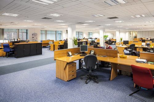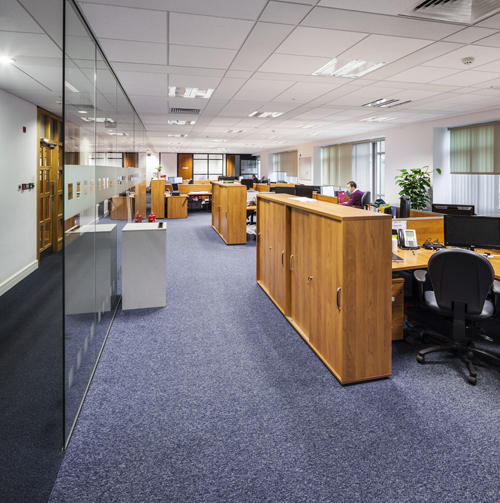 The air conditioning is provided by a four pipe floor standing fan coil system with under floor plenum fresh air supply from a central fresh air plant and ceiling void plenum air extract through air handling luminaries and grilles.