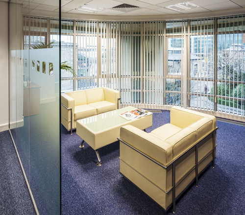 Externally, the building is of reinforced concrete frame construction with attractive Redland clay brick elevations and a striking Yorkstone clad entrance. The windows are a combination of structural glazing on the ground, first and penthouse floors. The balance of the glazing is a proprietary powder coated aluminium cap system.